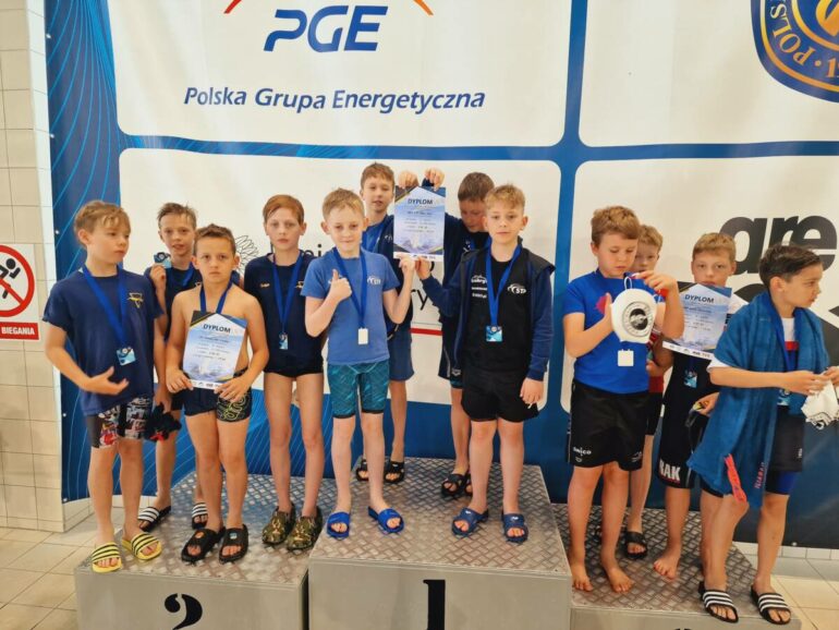 Z bardzo dobrej strony zaprezentowały się nasze sztafety. Chłopcy w kat. 10 lat zgarnęli 2 złote medale na 4x50m st. dowolnym i zmiennym. W kat. 11-latków na 4x100m st. dowolnym także byli najlepsi. Nasze panie wywalczyły dwa srebrne medale na 4x50m st. dowolnym i 4x50m st. zmiennym w kat. 13-latek oraz brąz na 4x100m st. dowolnym w kat. 11-latek i 13-latek.