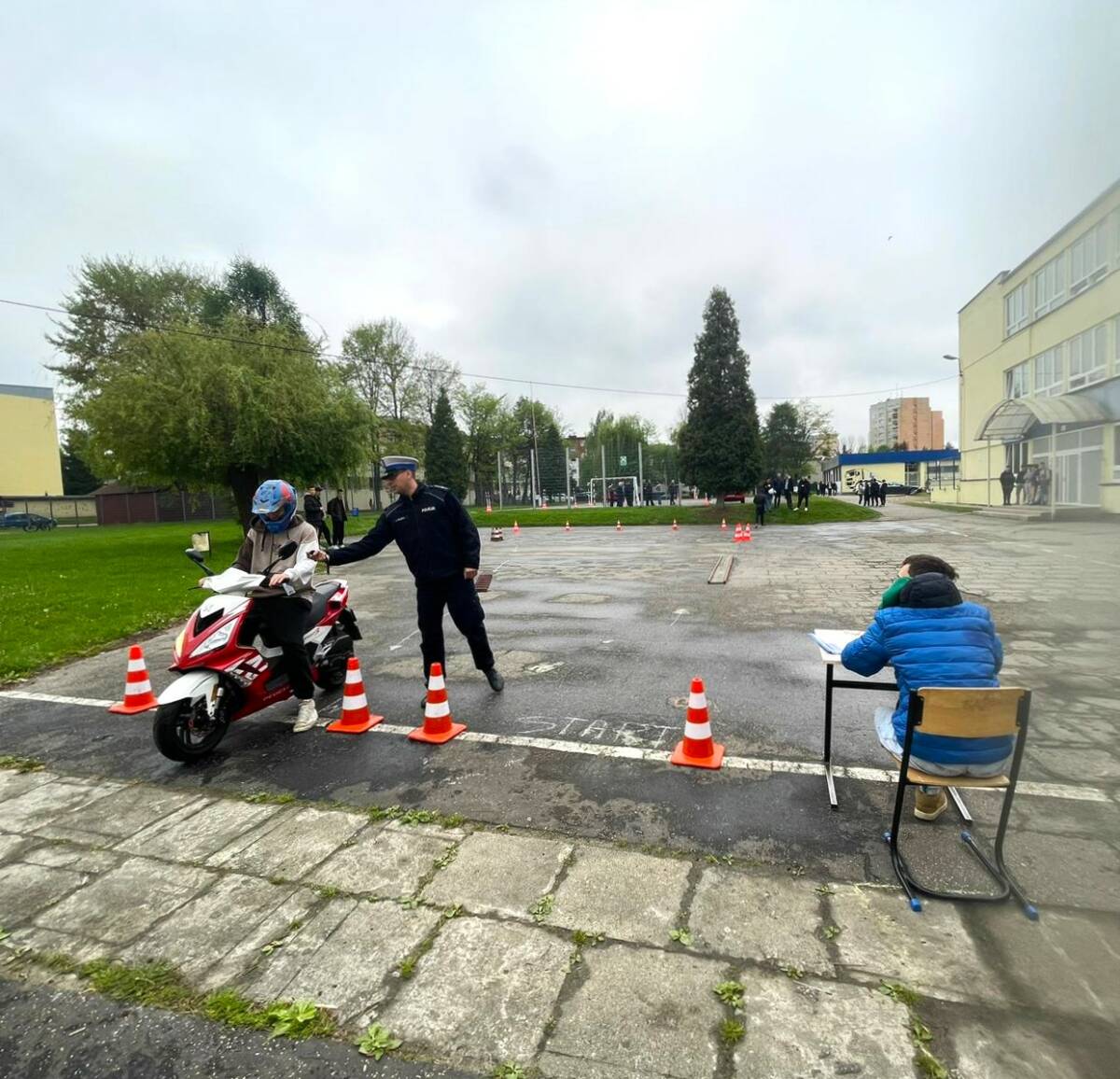 W części teoretycznej zawodnicy rozwiązywali testy wiedzy ze znajomości prawa o ruchu drogowym, natomiast do zadań praktycznych należało udzielenie pomocy przedmedycznej, jazda sprawnościowa motorowerem po torze przeszkód oraz jazda sprawnościowa samochodem osobowym z tzw. talerzem Stewarta.