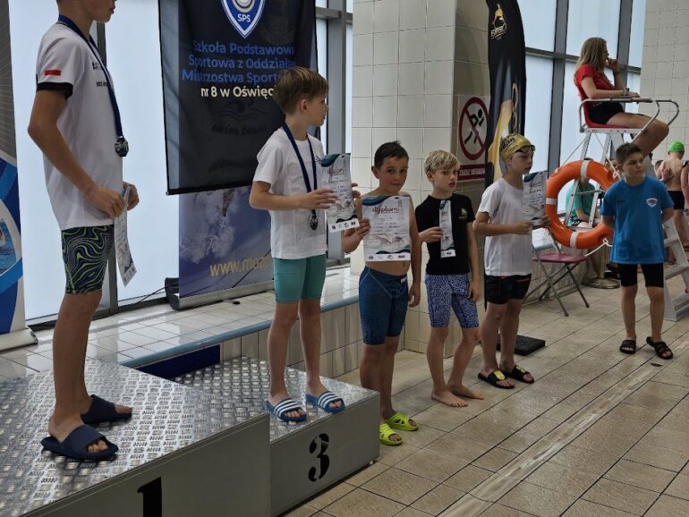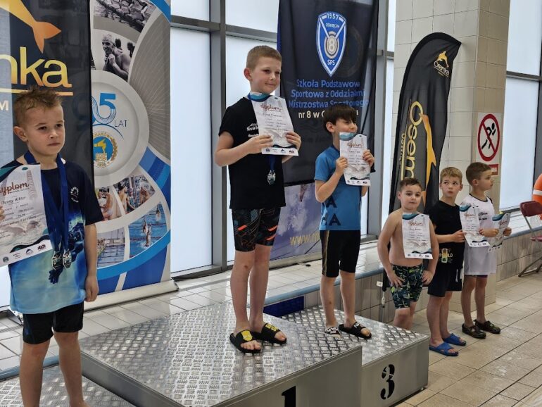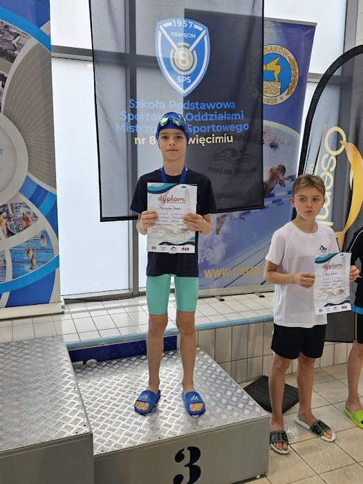 - Kacper Nowak – 25m st. grzbietowy (21.21 s.) – kat. 8 lat