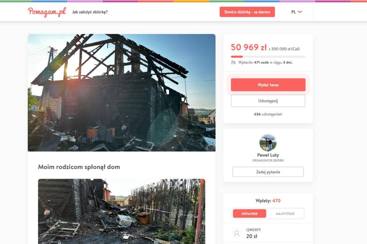 Na apel o pomoc odpowiedziało już mnóstwo osób. W ciągu zaledwie kilku dni udało się uzbierać kwotę ok. 50 tysięcy złotych. To jednak kropla w morzu potrzeb.