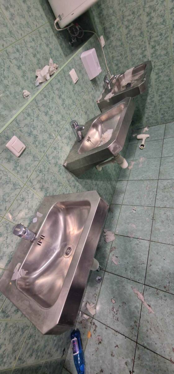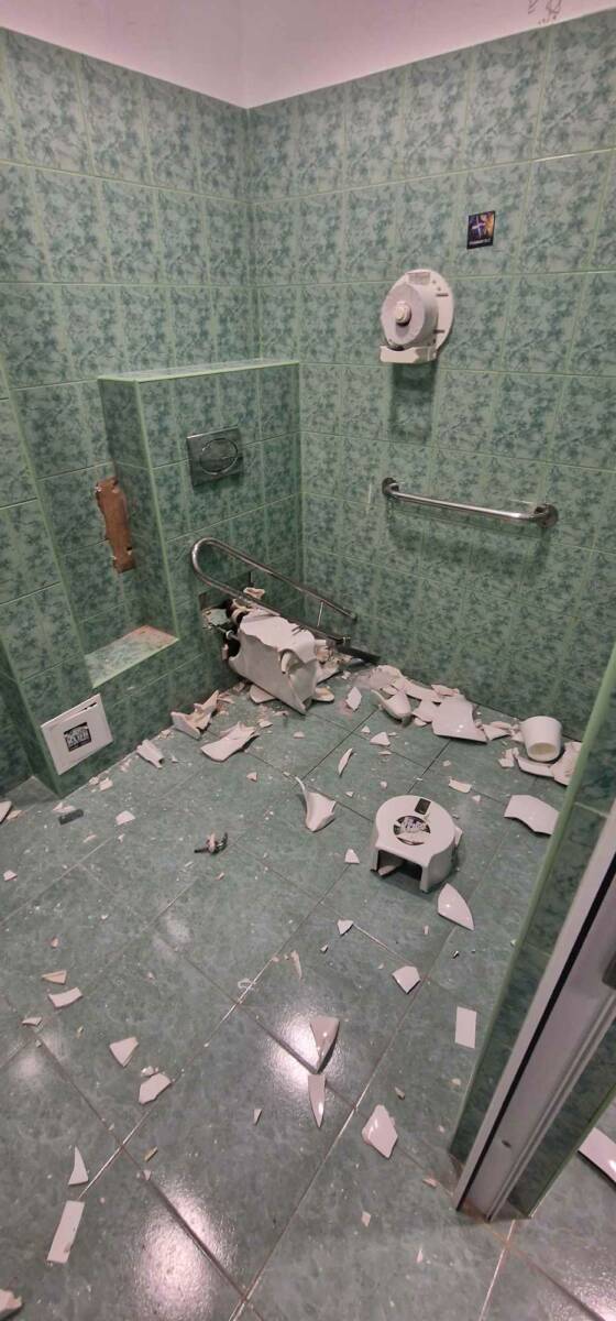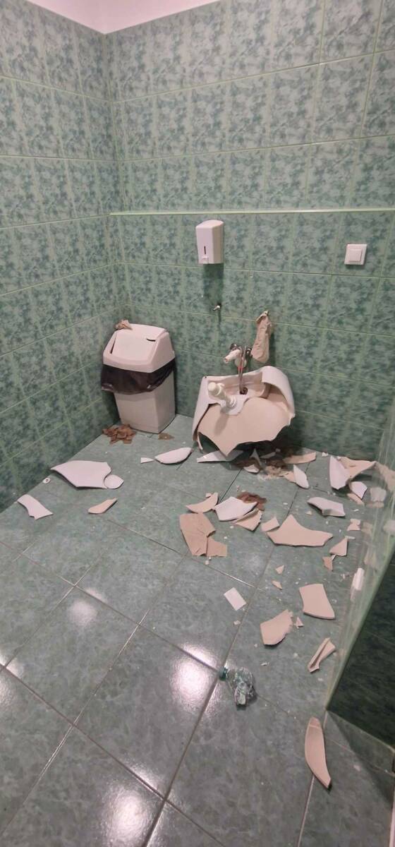 Siarka Tarnobrzeg opublikowała wpis w mediach społecznościowych, pokazując skalę zniszczeń. Jak widać, szkody obejmują również toalety, które aktualnie na pewno nie nadają się do użytku.