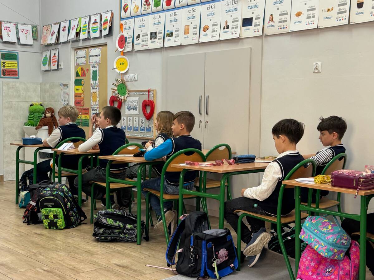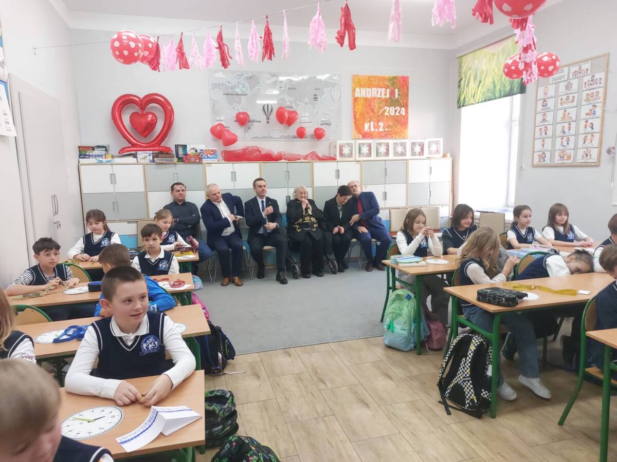 Dzieci podziękowały gościom piernikowymi sercami z logo szkoły, przygotowanymi przez zaprzyjaźnioną pierkarnię.
