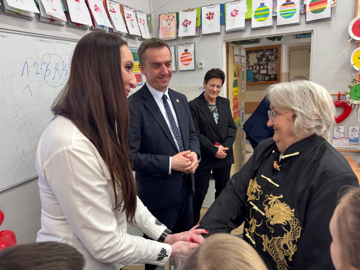 W trakcie rozmów po lekcji Prezes Newag S.A. Zbigniew Konieczek oraz Prezes Fundacji Newag Joanna Fryzowicz, finansujący innowację matematyczną, astronomiczną i techniczną w Akademickiej Szkole Podstawowej, przedstawili dotychczasowy dorobek Nowosądeckiego Projektu Edukacyjnego oraz plany inwestowania w edukację w najbliższych latach. Pani Prof. dr hab. Edyta Gruszczyk-Kolczyńska rozmawiała z Dr. Mariuszem Jużyńcem o pracy nad autorskim programem matematyki w starszych klasach szkoły podstawowej. W przygotowaniach programu bierze udział zespół dydaktyków z Politechniki Krakowskiej w składzie: Dr Mariusz Jużyniec, Dr Magdalena Grzech, Dr Anna Bistroń i Prof. dr Beata Strychan-Szemberg.