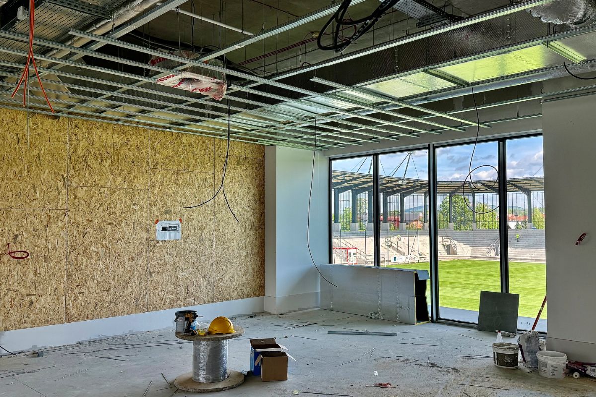 O tym, że prace na Stadionie Miejskim zmierzają do końca świadczy także przestrzeń częściowo użytkowego tarasu na budynku A. To tam powstają właśnie telewizyjne stanowiska komentatorskie, skąd będą relacjonowane mecze piłkarskie organizowane przy Kilińskiego 47. Po ostatnim udanym testowym uruchomieniu oświetlenia, ekipa techniczna dokonała kalibracji urządzeń oświetleniowych na wszystkich czterech trybunach obiektu.