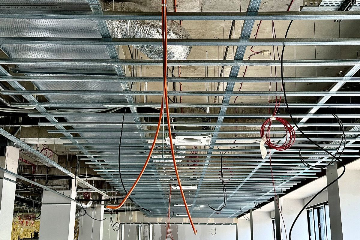Ważne prace trwają wewnątrz budynku A, gdzie kontynuowane są roboty wykończeniowe. Na poziomie pierwszym trwają roboty związane z wykonaniem sufitów podwieszanych. Zostały wykończone schody na wszystkich ciągach komunikacyjnych oraz zamontowane wszystkie drzwi zewnętrzne na terenie całego obiektu.