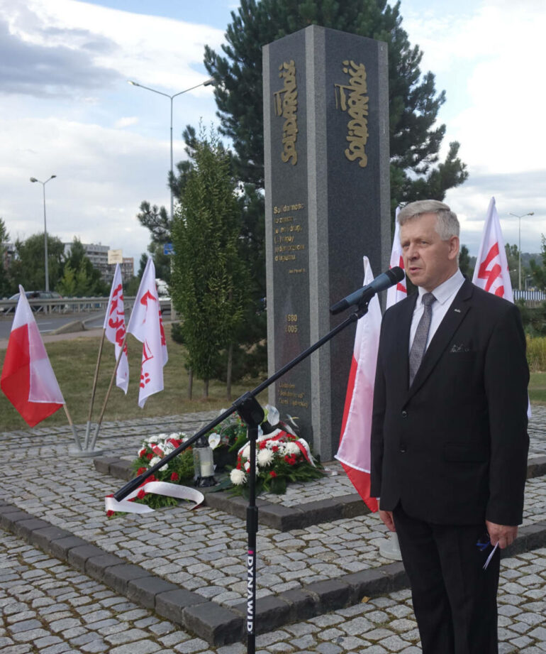 Kwiaty pod pomnikiem „Solidarności” złożyli reprezentanci środowisk kombatanckich, działaczy związkowych, służb mundurowych, a także poseł do Parlamentu Europejskiego Arkadiusz Mularczyk, poseł na Sejm RP Patryk Wicher oraz radny Województwa Małopolskiego Jan Duda.