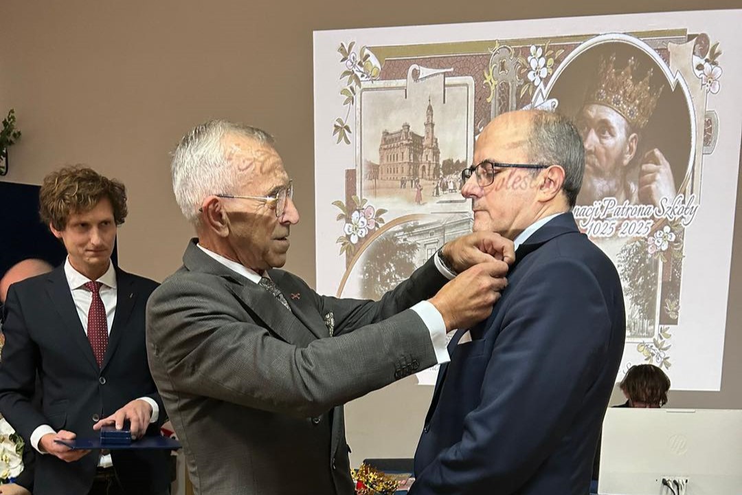To wyjątkowy dzień dla szkoły i dla jej dyrektora. W trakcie spotkania podsumowującego Rok Tysiąclecia Koronacji Króla Bolesława Chrobrego., w którego obchody – ze względu na osobę patrona – Zespół Szkół Akademickich zaangażował się wyjątkowo mocno wyjątkowym odznaczeniem został uhonorowany profesor oświaty Bogusław Kołcz. To Złota Odznaka Honorowa Województwa Małopolskiego – Krzyż Małopolski. W imieniu Zarządu województwa wręczył mu go radny województwa małopolskiego Jan Duda.