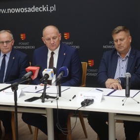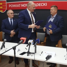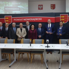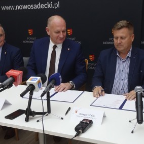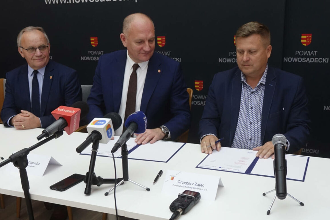 Starosta nowosądecki Tadeusz Zaremba podpisał dzisiaj z prezesem Zarządu firmy ZIBUD Grzegorzem Zającem umowę na przebudowę drogi powiatowej nr 1583 Obwodnica Zachodnia Nowego Sącza. Inwestycja ma zostać zrealizowana do maja 2027 r., a największy zakres prac przewidziano na II i III kwartał 2026 roku.