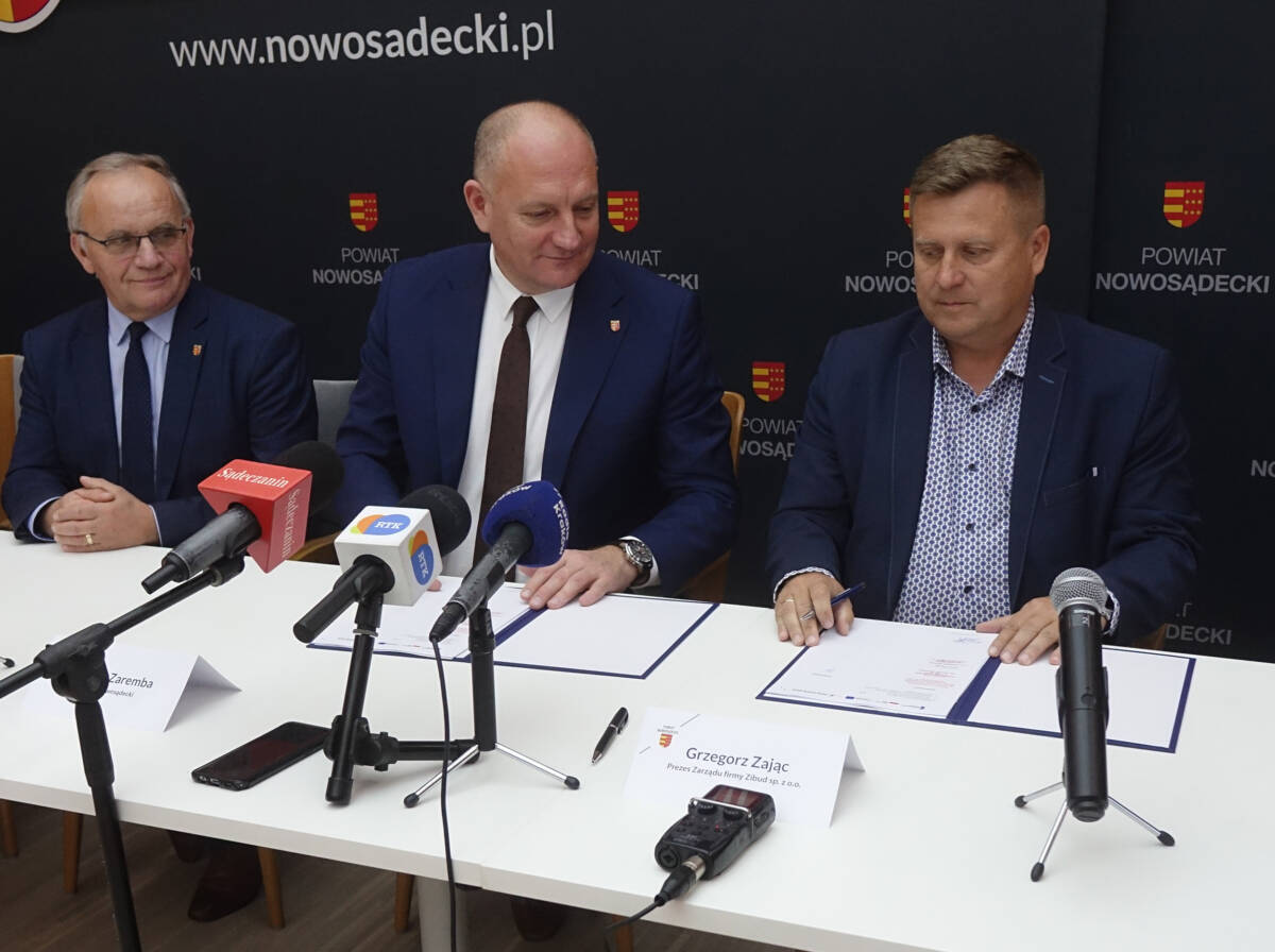 Starosta nowosądecki Tadeusz Zaremba podpisał dzisiaj z prezesem Zarządu firmy ZIBUD Grzegorzem Zającem umowę na przebudowę drogi powiatowej nr 1583 Obwodnica Zachodnia Nowego Sącza. Inwestycja ma zostać zrealizowana do maja 2027 r., a największy zakres prac przewidziano na II i III kwartał 2026 roku.
