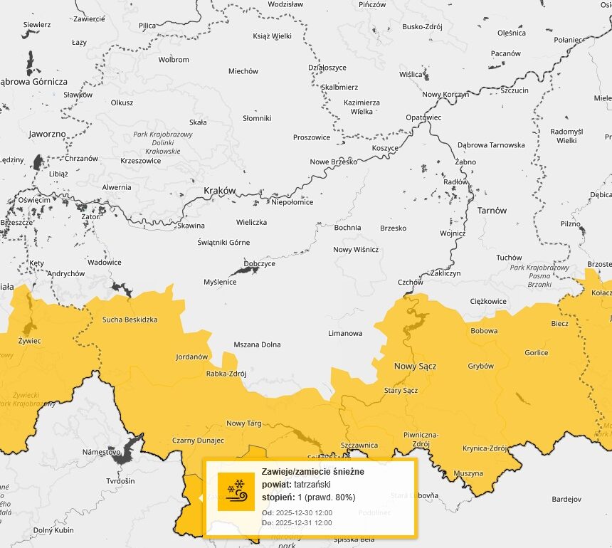 Zima da się nam we znaki. Ostrzeżenie pogodowe obowiązują już dla 6 powiatów naszego województwa: gorlickiego, nowosądeckiego, nowotarskiego, Nowego Sącza, suskiego i tatrzańskiego.